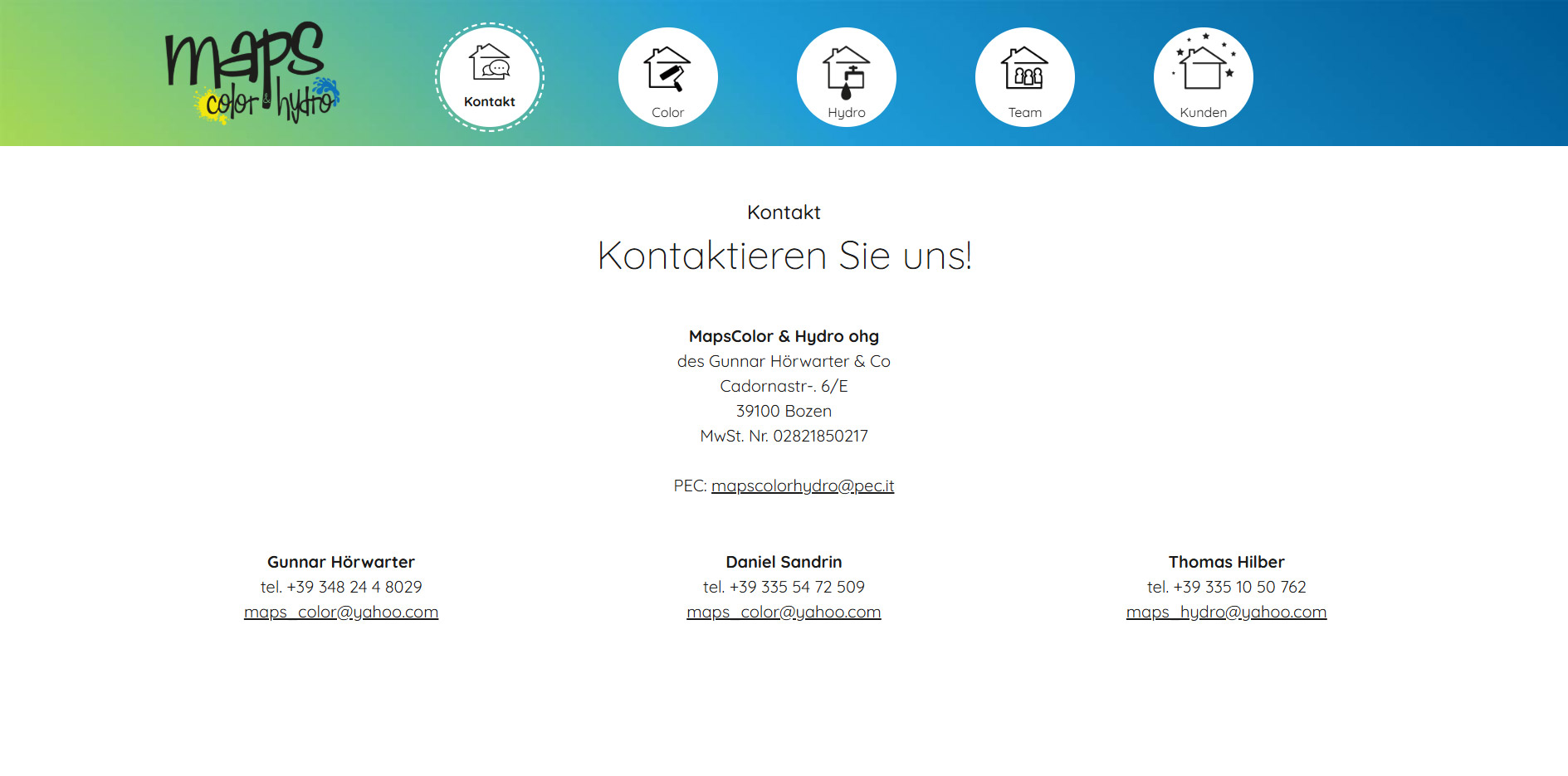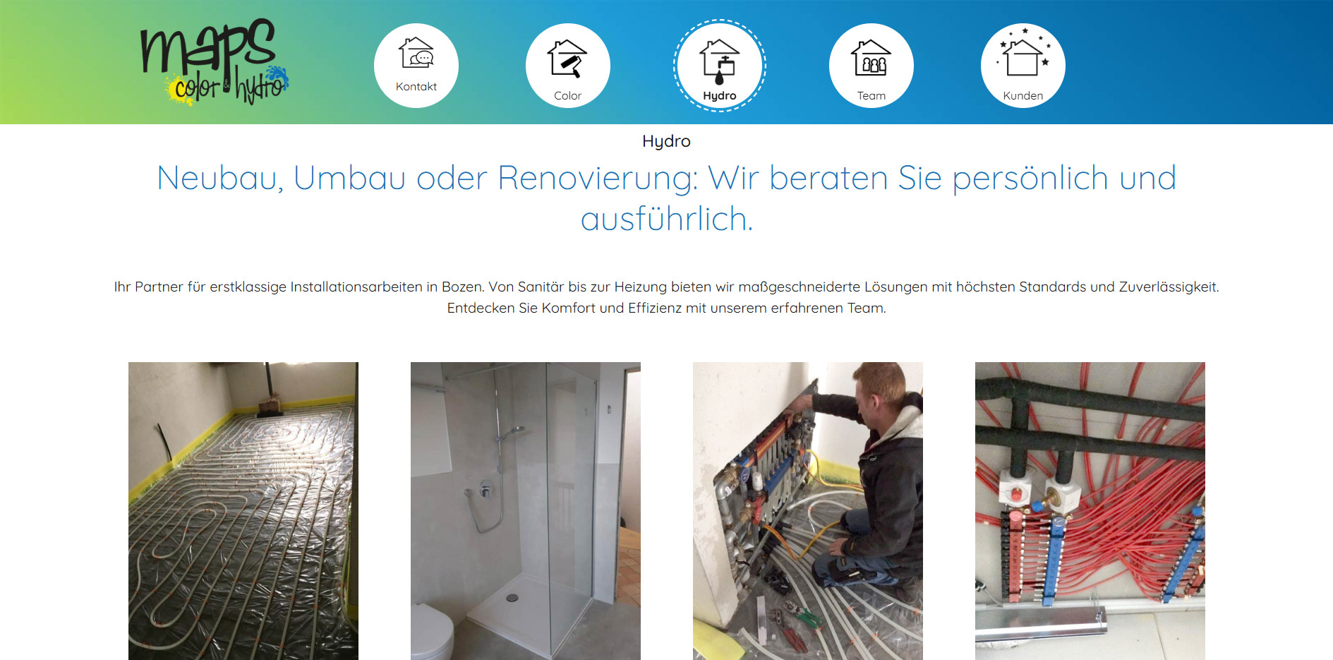 Web MapsColor & Hydro MapsColor & Hydro ohg Maler- und Installateurbetrieb in Bozen. Sie bringen Farbe in euer Leben und verwandeln eure Bäder in Wohlfühloasen. maps-color.com